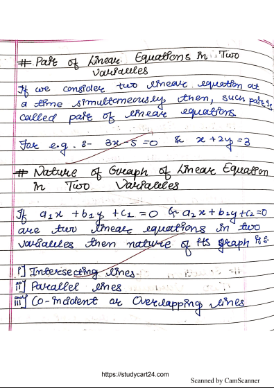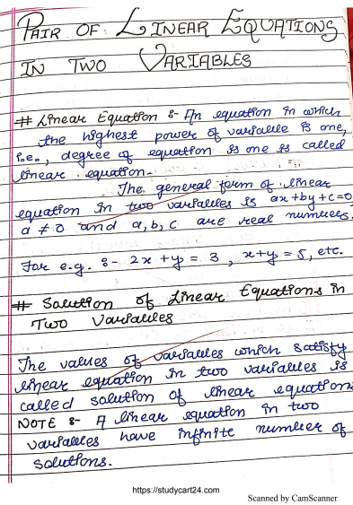 Images of Chapter 3: Pair of Linear Equations Class 10th Handwritten Notes